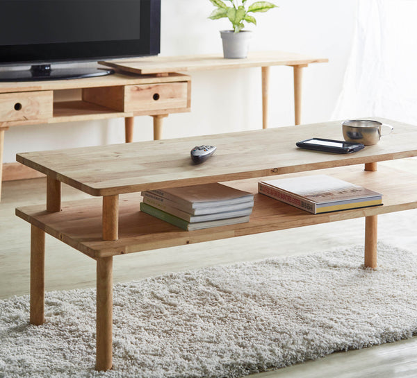Add style and function to your living room with this 2-in-1 double-decker wooden coffee table. Designed with two spacious tiers, it gives you the perfect balance of display and storage, while maintaining a clean, minimalist look. Use it stacked as a space-saving centrepiece or separate them to create two functional side tables.