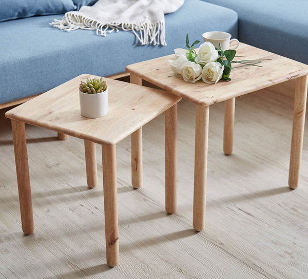 Add timeless charm and versatile function to your living space with this beautifully crafted set of nesting side tables. Made from solid natural wood with a smooth finish, these tables bring warmth and style to any room. Whether you’re enjoying coffee by the sofa, displaying décor, or needing an extra surface, these nesting tables are the perfect blend of practicality and style.